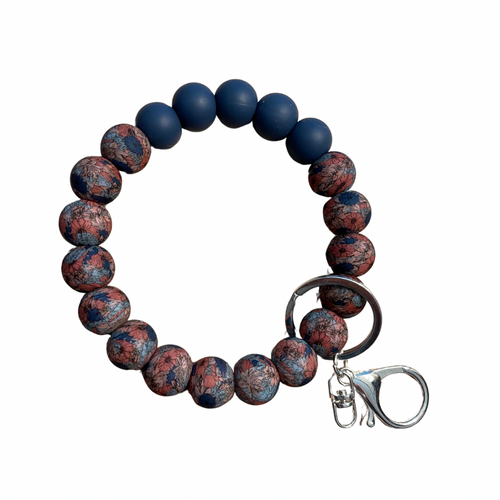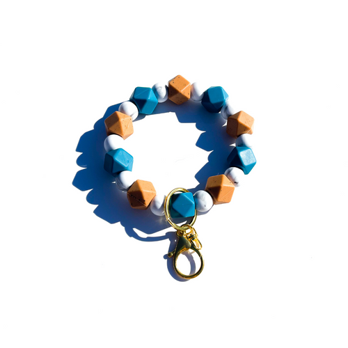 Blue, Brown, and Marble Geometric Keychain Wristlet
