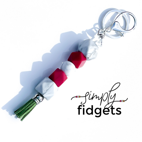 Our fringe tassel fidgets are fun, customizable, and extremely sensory-friendly. Complete with several different shapes and textures of silicone beads, we've added a faux-suede fringe tassel on the end for extra fidgeting engagement.